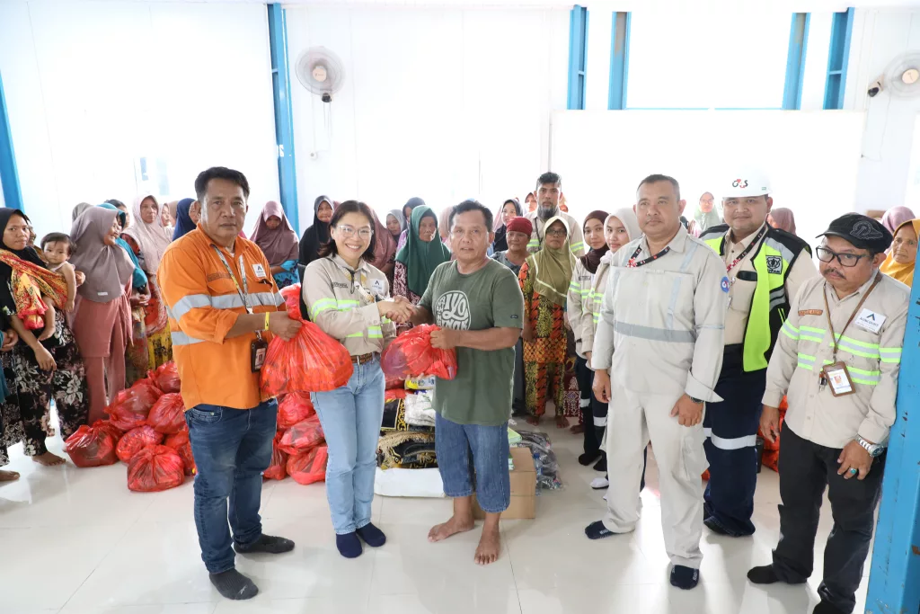 A total of 245 households residing in the shelter received support in the form of 150 cartons of mineral water, 150 food packages, and 150 non-food packages. The assistance was handed over symbolically by Senior Manager Community, Christine Pepah, and Manager Community Relations, Masdar Muda, and received by Risman Rambe, Head of Desa Garoga, on behalf of all shelter residents.